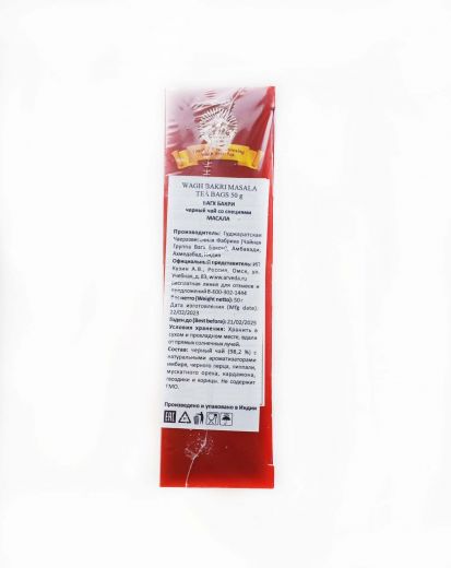 Состав: черный чай (98,2%) с натуральными ароматизаторами имбиря, черного перца, пиппали, мускатного ореха, кардамона, гвоздики и корицы. Не содержит ГМО.