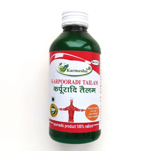 Массажное масло Карпуради используется для уменьшения судорог, боли, скованности и онемения. Нежный массаж с маслом Карпуради полезен в случаях мышечных спазмов, общей боли в теле, сопровождающейся скованностью, болью в суставах, болью в шее, скованностью суставов и заложенностью грудной клетки. Он обладает нейропротекторными свойствами, а также предотвращает покраснение кожи.