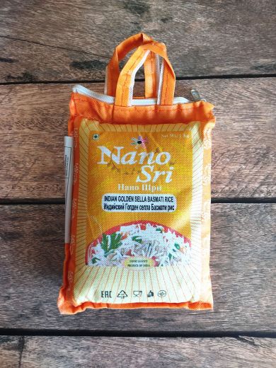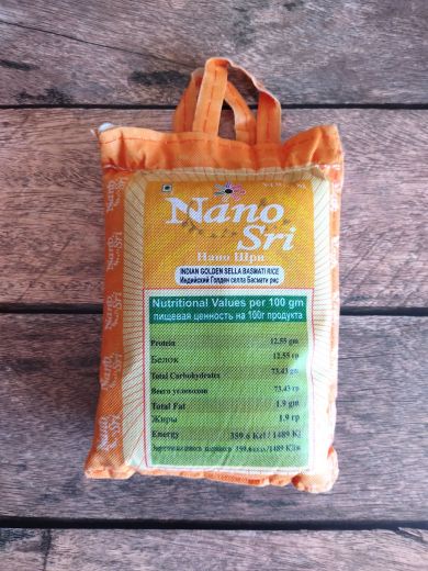 Длиннозерный пропаренный индийский рис красивого золотистого цвета Голден Селла от Nano Sri обладает неповторимым вкусом и ароматом.